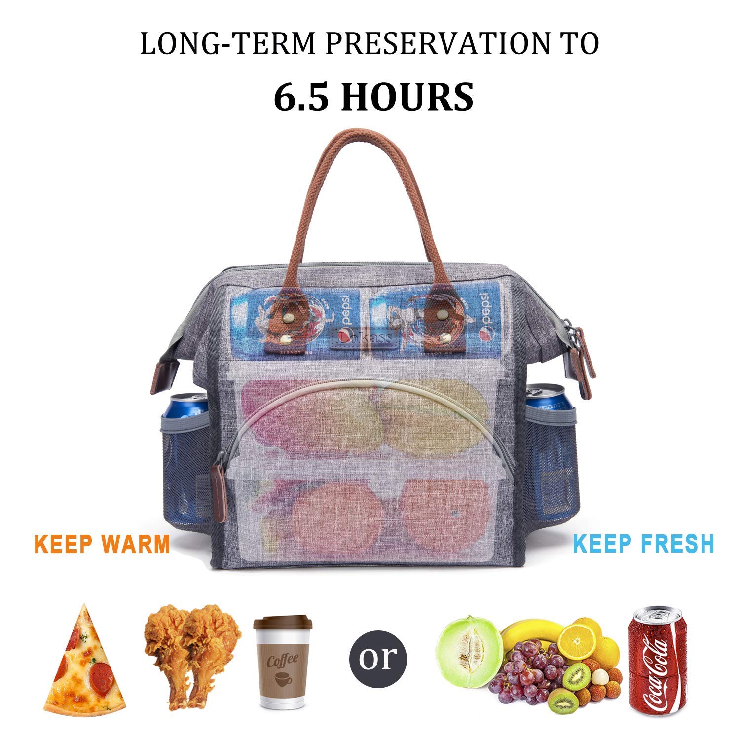 LOKASS Lunch Bags for Women Wide Open Insulated Lunch Box With Double Deck Large Capacity Cooler Tote Bag With Removable Shoulder Strap Leak-Proof Lunch Organizer For Men/Outdoor/Work(Grey)